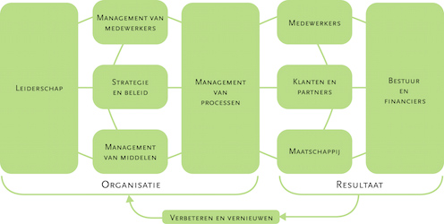 De manier waarop de organisatie vanuit de strategie en het beleid haar processen identificeert, ontwerpt, beheerst en -waar nodig- verbetert of vernieuwt. De effectiviteit voor interne en externe klanten is een belangrijke graadmeter voor succes. Er wordt onderscheid gemaakt tussen primaire, ondersteunende en besturingsprocessen. Management van processen vraagt om evenwicht tussen enerzijds standaardisatie en regulering en anderzijds ruimte en handelingsvrijheid voor de professionele medewerker om in de praktijk adequaat te kunnen functioneren.